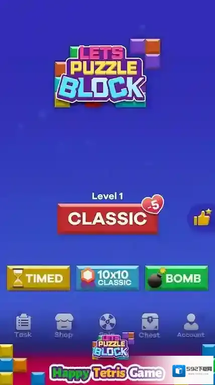 1、点击CLASSIC模式按钮开始游戏,消耗5点体力进行方块消除挑战。