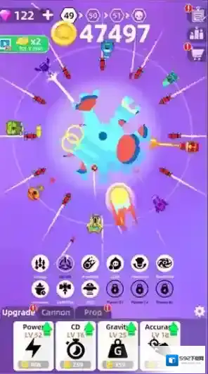 3、积攒金币升级武器威力,后期面对大型行星时,需要预判碎片飞行轨迹,连续攻击才能完全摧毁。