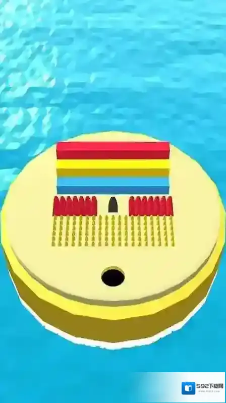 2、在新的关卡场景,依照箭头方向,让黑洞吞噬彩色长条和尖刺等物体,合理规划吞噬顺序,避免碰到陷阱。