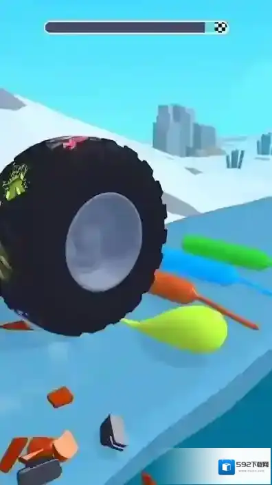 2、闯关途中,遭遇各类形状奇特的障碍物与特殊地形,需灵活调整轮胎方向与速度,巧妙碾压通过,获取更高分数。