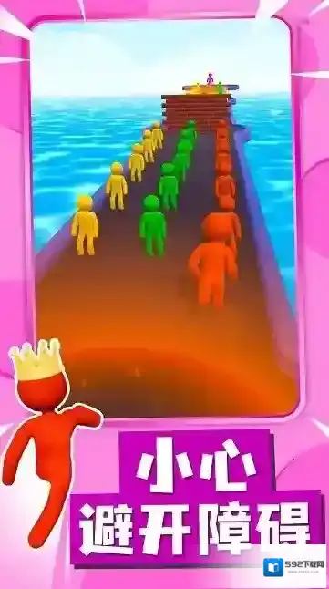 2、赛道上设有各种障碍,玩家需小心操控队伍,躲避障碍,确保小人顺利前进,避免队伍规模因碰撞障碍而减小。