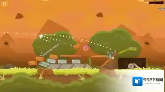 4、进入关卡后操作和原版一样,都是利用弹弓发射小鸟来摧毁障碍和小猪。
