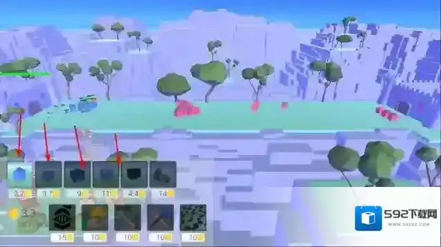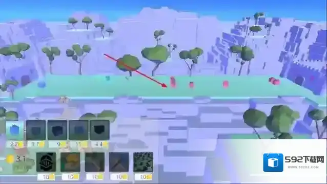 2、“布置建筑”,选择建筑类型(如蓝色、粉色建筑 ),放置在方块地形,覆盖敌人路径。
