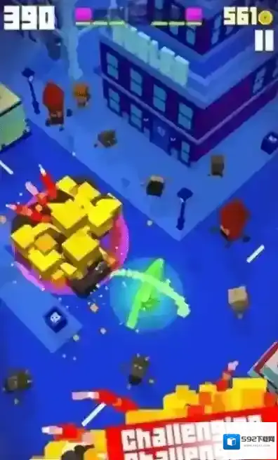 2、根据关卡要求完成爆炸任务,如摧毁指定数量的建筑、达成特定爆炸破坏值,爆炸过程中收集散落的能量晶体。