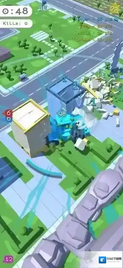 1、全场景破坏:所有场景元素均可摧毁,从高楼大厦到路灯长椅,真实物理引擎带来逼真的破坏效果,体验无拘无束的毁灭快感。