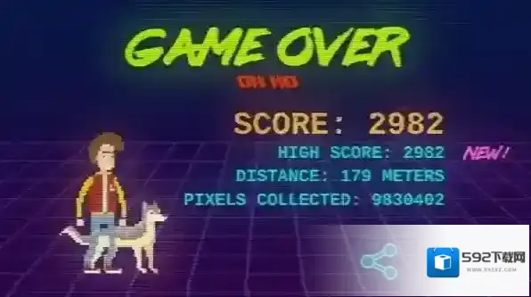 1、进入游戏后,在霓虹闪烁的城市场景中操控角色起跑,通过点击屏幕完成跳跃动作跨越路障,向下滑动实现滑行躲避低矮障碍,首次遭遇旋转齿轮时需把握时机连续跳跃通过。