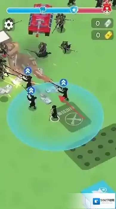 1、“派兵作战”,点击派兵,指挥黑色士兵部队,攻打敌方(巨人、坦克),推进战线。