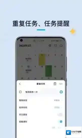 重要的纪念日、信用卡还款、学生的课程等可以设置重复任务显示在日历上,还可以通过微信提醒