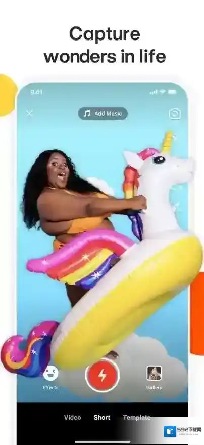 人人都可以一键创作受欢迎的短视频。上千款变脸贴纸、音乐魔法滤镜,大幅提升你的创造力,要萌要酷随你变,怎么变都好看。