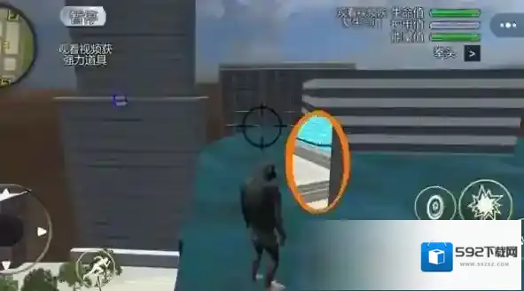 2、遇到建筑时,按箭头指引寻找隐藏入口(如橙色圈区域),进入建筑内部,探索新场景、收集道具。
