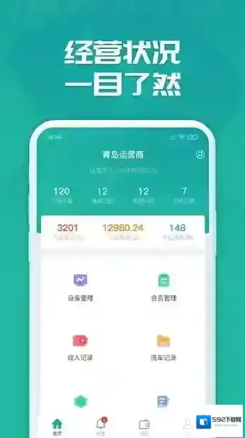 设备管理、会员管理、收入记录、洗车记录等内容一目了然。
