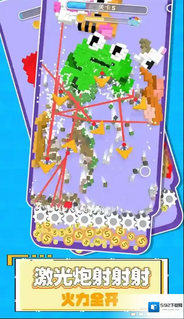 1、极简操作设计:仅需点击滑动即可完成指令,无复杂规则限制,无论是挤压泡泡、切割物体还是粉碎障碍,操作轻松易上手,瞬间开启解压模式。