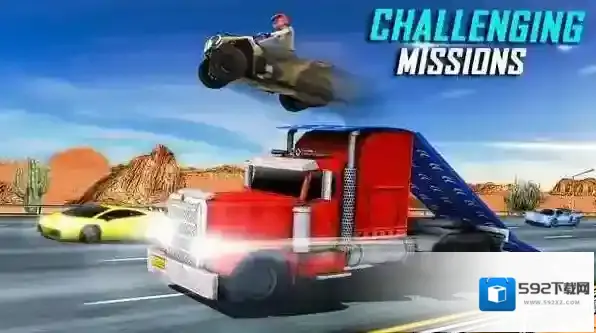 2、特技动作释放:遇到跳跃台时提前加速,腾空后操控车身角度完成360°旋转等特技,落地后迅速调整姿态保持速度。