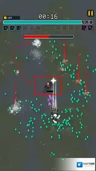 2、在这个时候敌人会从四面八方扑面而来,然后可以靠近敌人就会进行自动攻击。