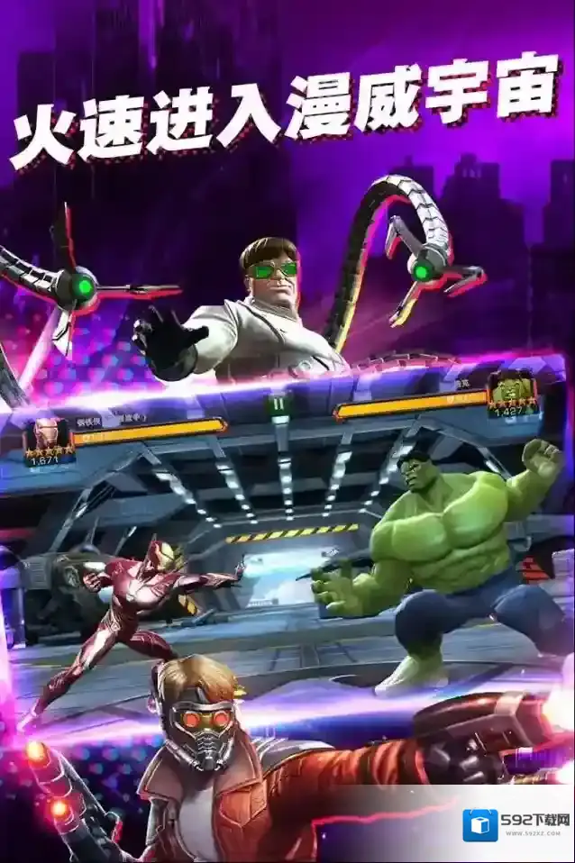 2、随时都会有新的英雄进入到格斗赛当中来!经典漫威风格的刺激剧情,与众多英雄和反派角色在位于漫威宇宙的各处标志性场景展开激战。