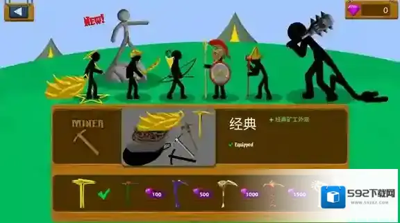 5、第五关:剑士反击,4名矿工,其余全养剑士,此时剑士头盔满级,可压制对方