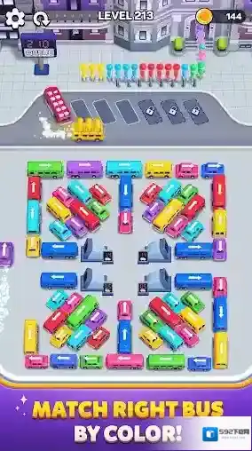 1、有策划的规划巴士的移动,根据颜色进行匹配,让所有巴士能够顺利开出,接走所有客人成功过关。